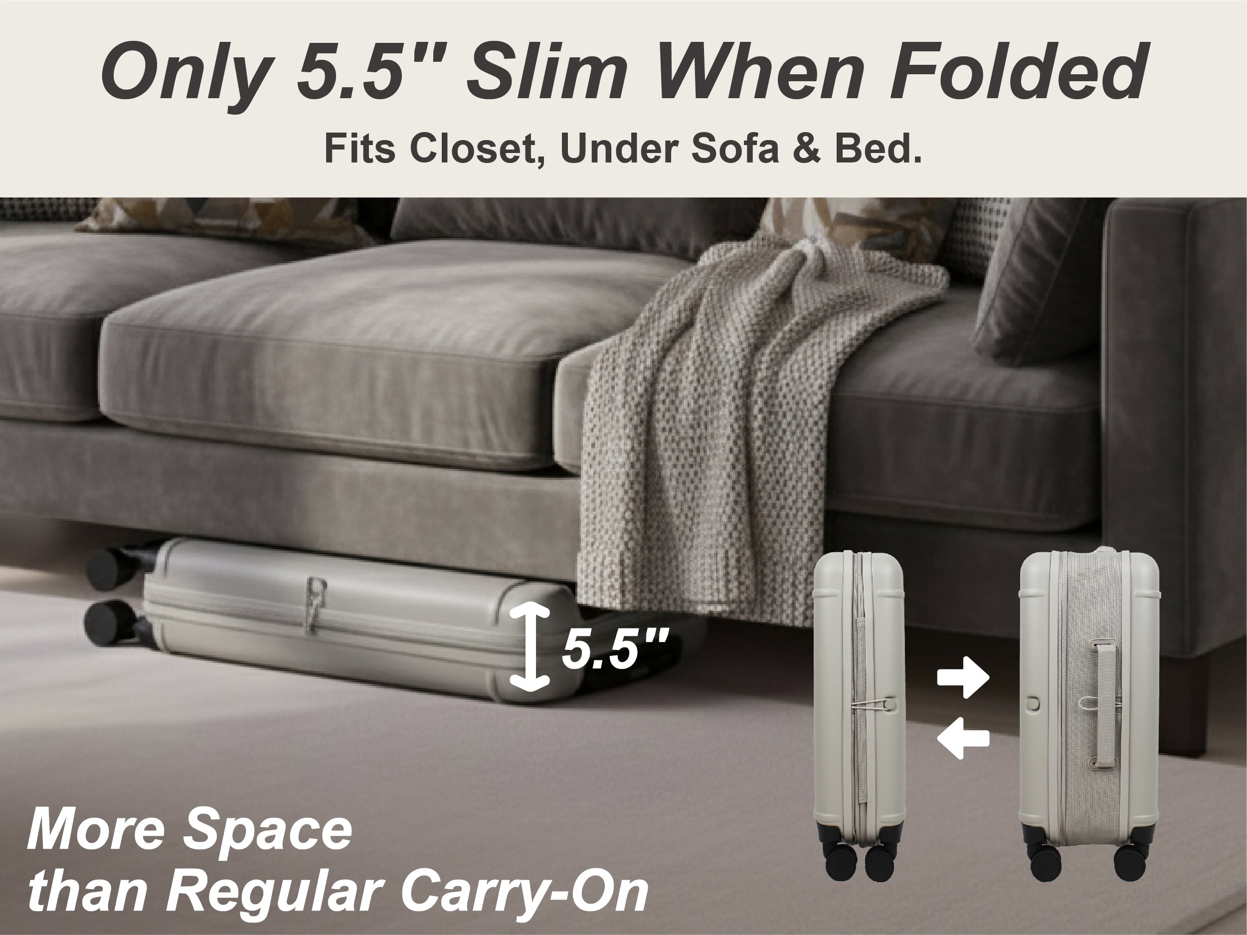 Premium Collapsible Carry-On Luggage (Cloud Grey)