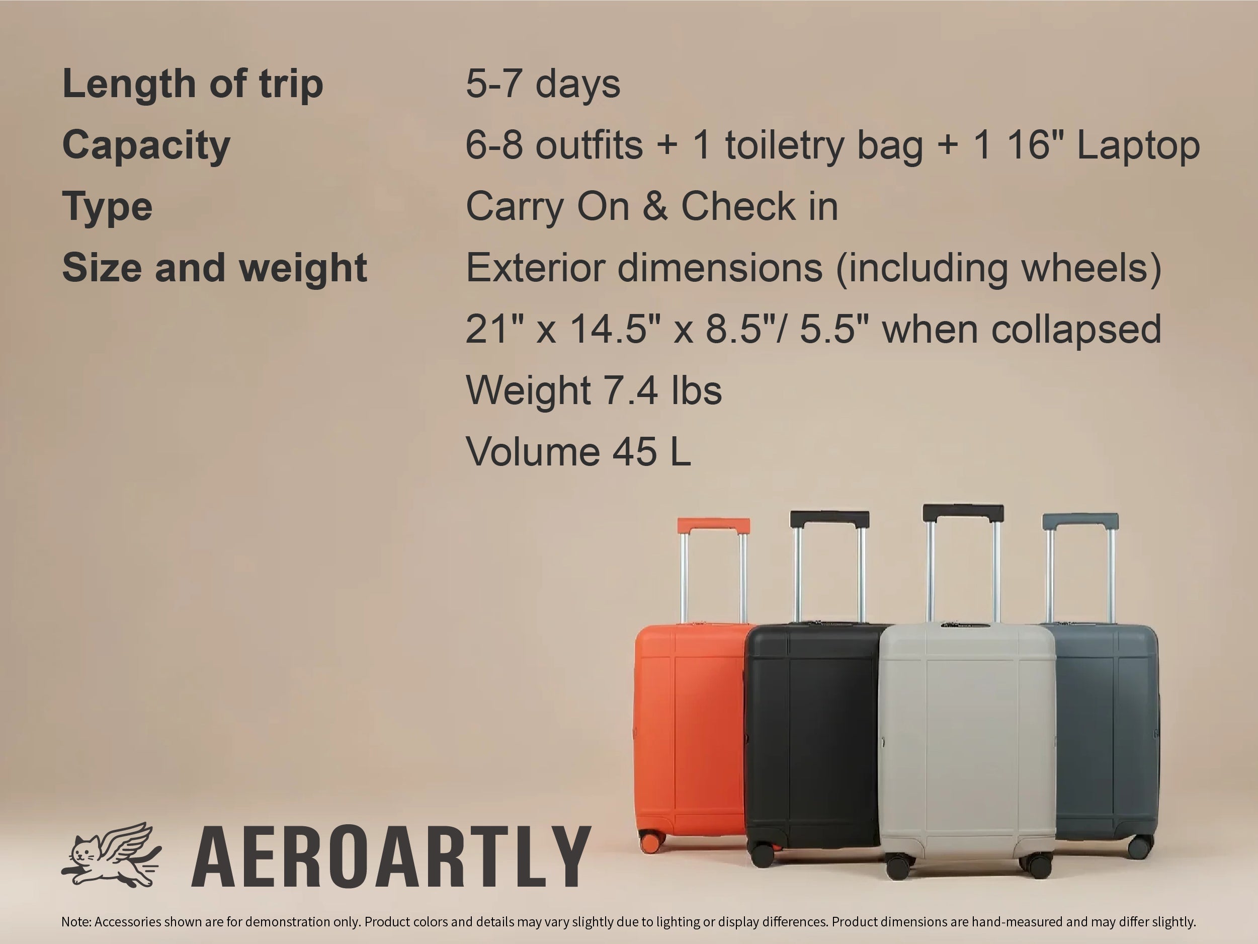 *Our Carry-On Suitcase fits most airline guidelines globally. For more information, please see our Luggage Size page.